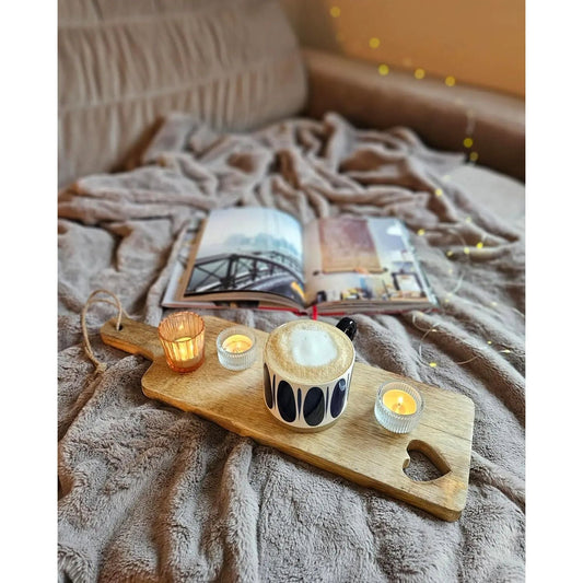 Tablett Mangoholz langes Tablett Kerzentablett Serviertablett 68 cm Holz