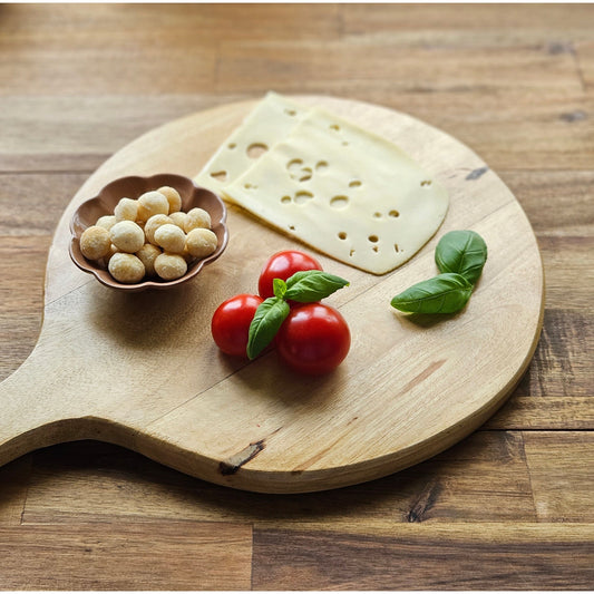 Serviertablett rund mit Griff Mangoholz 30 cm Dekotablett Schneidebrett