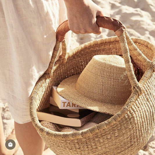 Handgewebter Korb aus Elefantengras – mit Ledergriffen