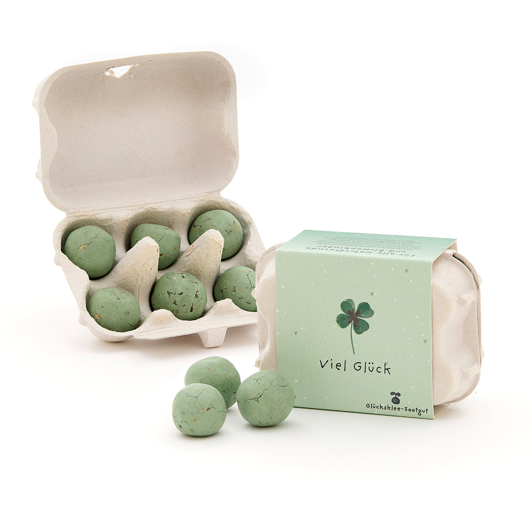 Grüne Murmeln, grüner Daumen: Einfach einpflanzen, gießen und freuen: Aus den Samenbomben wächst dekorativer Glücksklee heran – perfekt für Balkon, Garten oder Blumentopf.