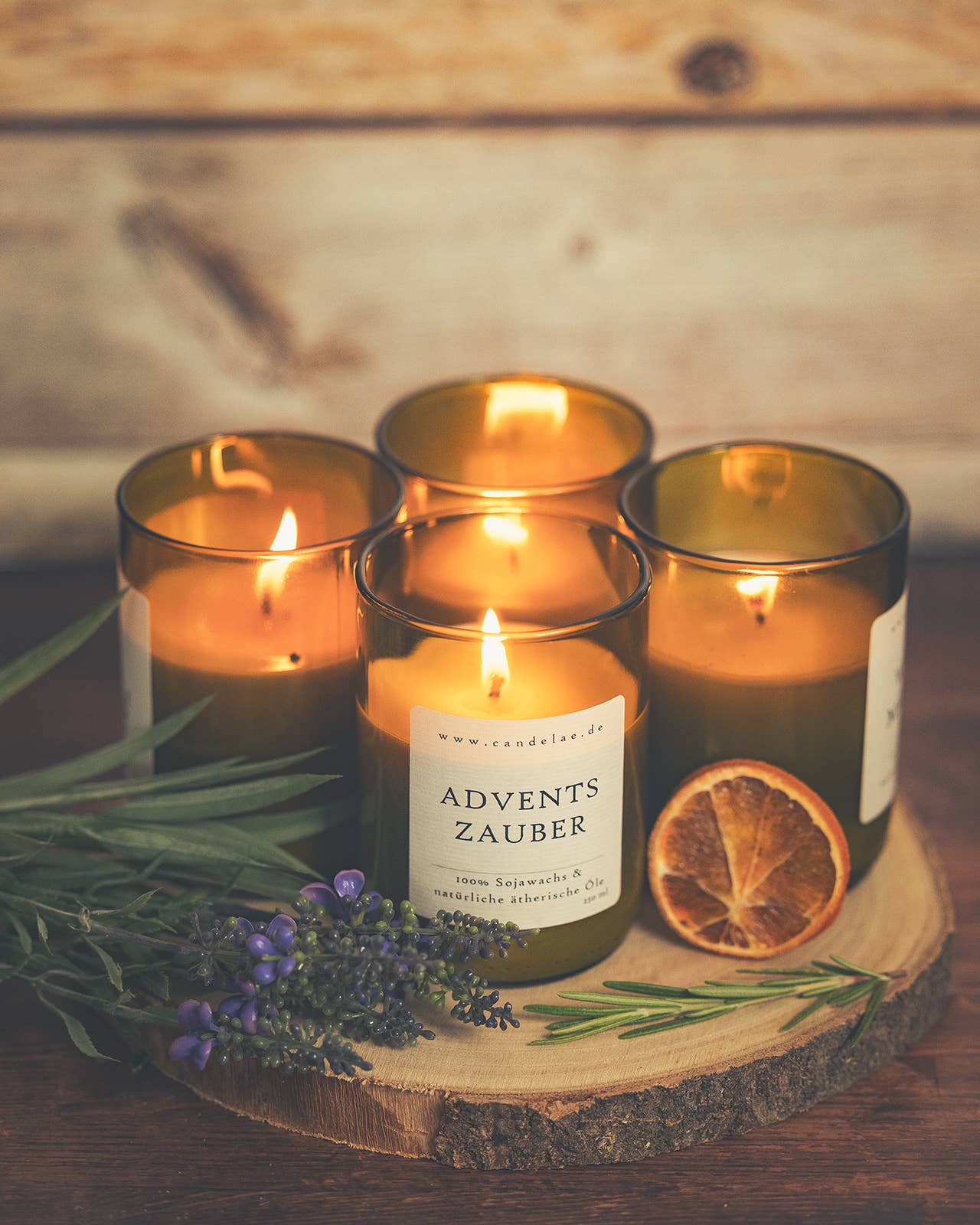 Gefertigt aus hochwertigem Bio-Sojawachs und in handgeschnittene, recycelte Weinflaschen gegossen, ist jede Kerze ein nachhaltiges Unikat. Dank einer Brenndauer von bis zu 60 Stunden begleitet sie dich durch die gesamte Vorweihnachtszeit – ökologisch, vegan und schadstofffrei.
