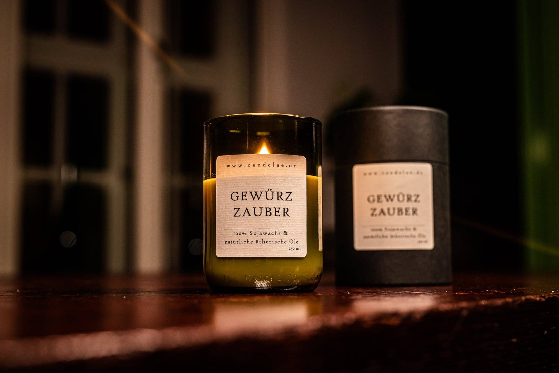 Hergestellt aus nachhaltigem Sojawachs und in recycelten Weinflaschen gegossen, ist jede Kerze ein handgefertigtes Unikat. Mit bis zu 60 Stunden Brenndauer sorgt sie für langanhaltende, stimmungsvolle Momente – ganz ohne Schadstoffe, Paraffin oder künstliche Aromen.