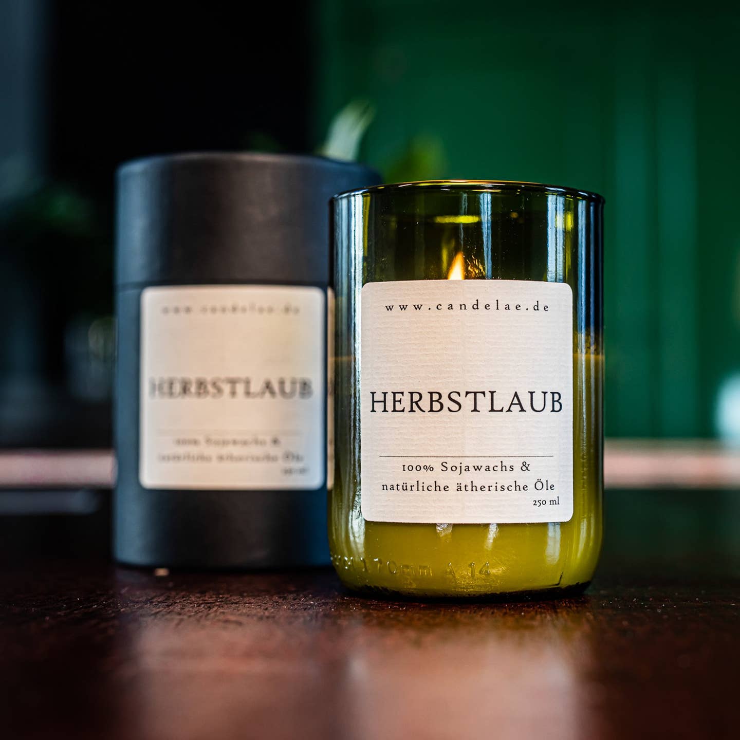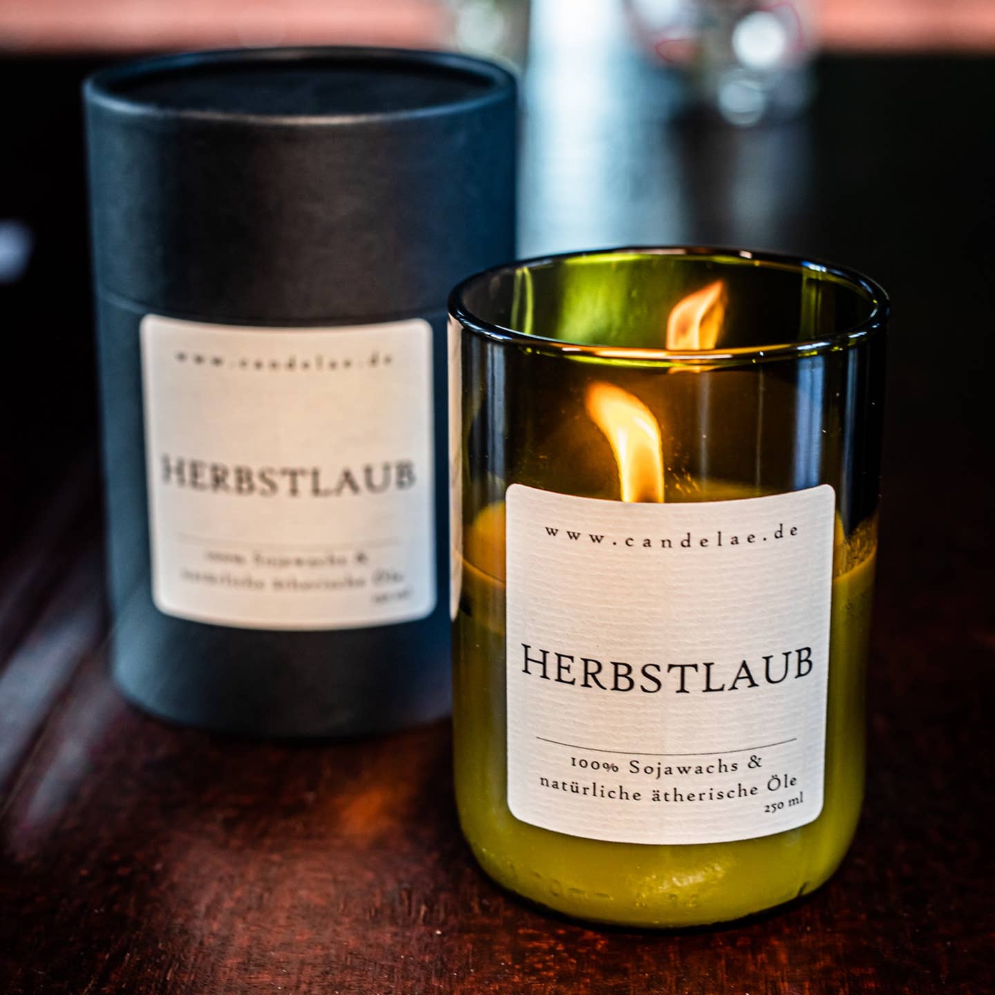 Duftkerze Herbstlaub – aus recycelter Weinflasche & Sojawachs