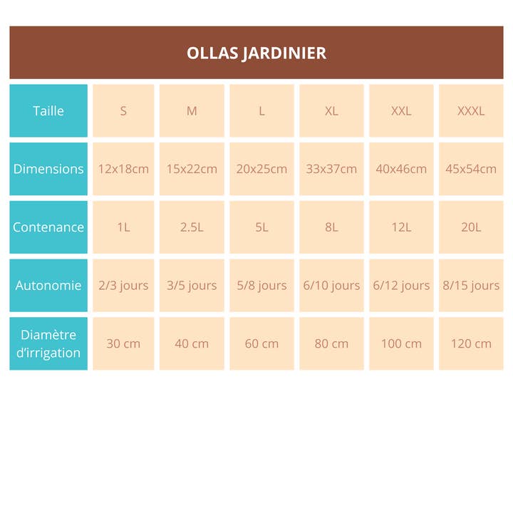 Mit den erdvergrabenen Gartenkrügen Ollas Jardinier holst du dir eine nachhaltige, einfache und effiziente Lösung für die Bewässerung deines Gartens. Von Kräutertöpfen bis zu Obstgärten – für jede Pflanze gibt es die passende Größe.