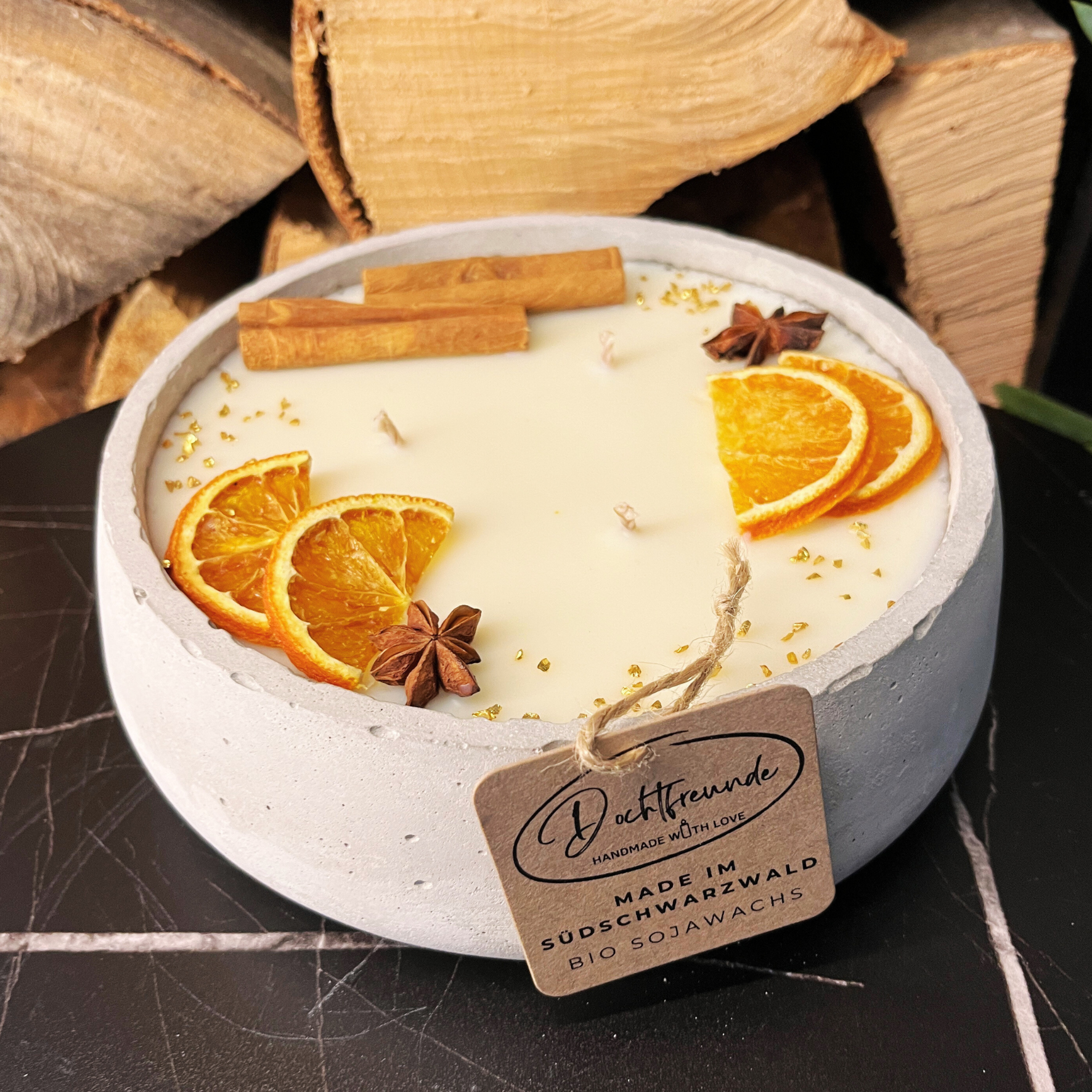 Jede Kerze wird von Susanne und Stephan, den leidenschaftlichen Machern von DochtFreunde, handgefertigt. Die limitierte Verfügbarkeit ergibt sich aus der aufwendigen Herstellung, die jede Kerze zu einem besonderen Kunstwerk macht. Der robuste Betonbehälter ist mit Beton-Öl versiegelt, um Langlebigkeit zu gewährleisten. Kleine Unebenheiten oder Einschlüsse unterstreichen den handwerklichen Charakter. Der Behälter ist durchgefärbt, da der Betonmischung bereits Pigmente beigefügt werden, was für ein einheitliches, modernes Design sorgt.