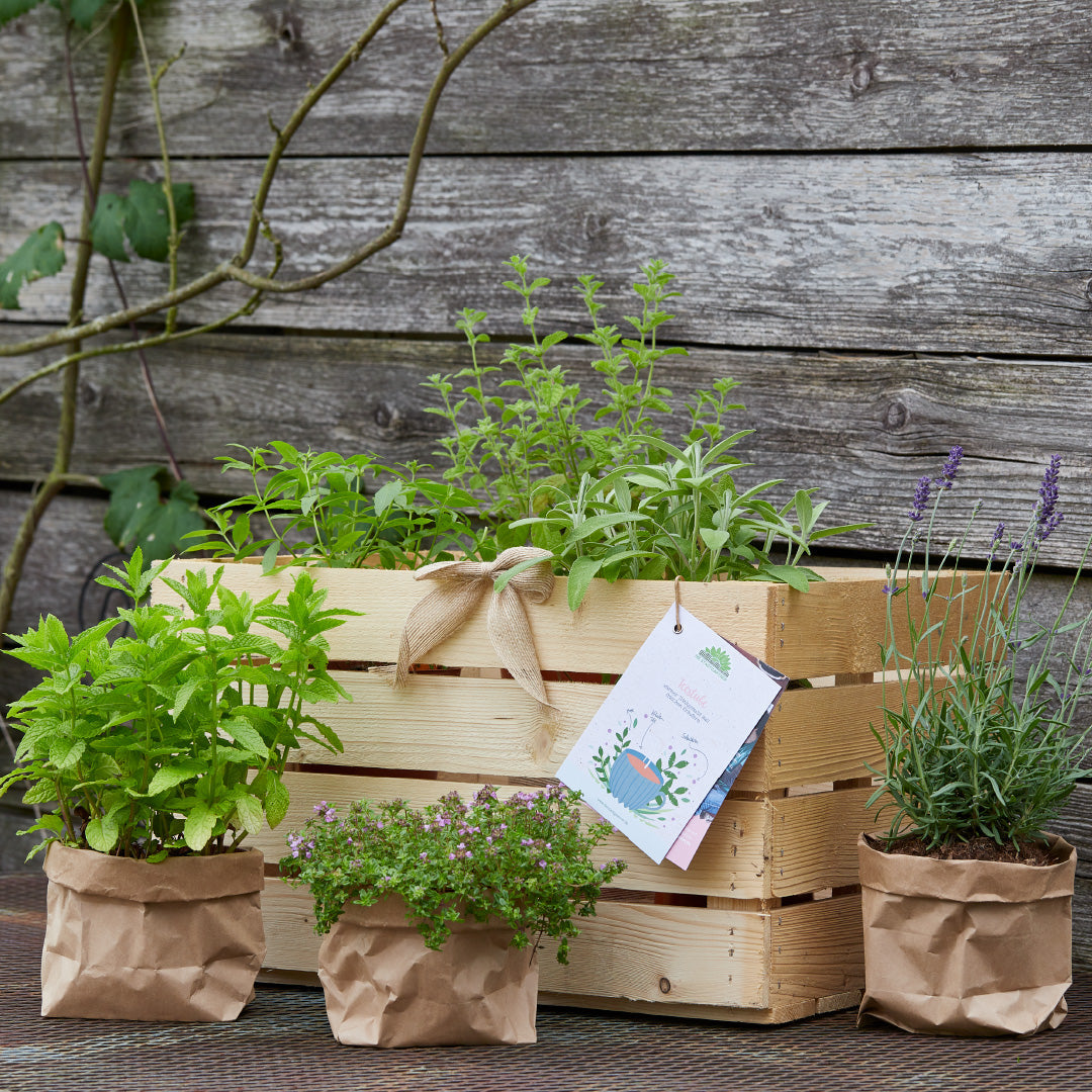 Die Pflanzen werden in der Holzkiste mit entsprechenden 'Setcards' geliefert. Mehr Informationen zu diesem Set und den enthaltenen Pflanzen findest du weiter unten auf dieser Seite. Sollte eine Pflanze kurzfristig nicht verfügbar sein, wird sie durch eine ähnliche Pflanze ersetzt.
