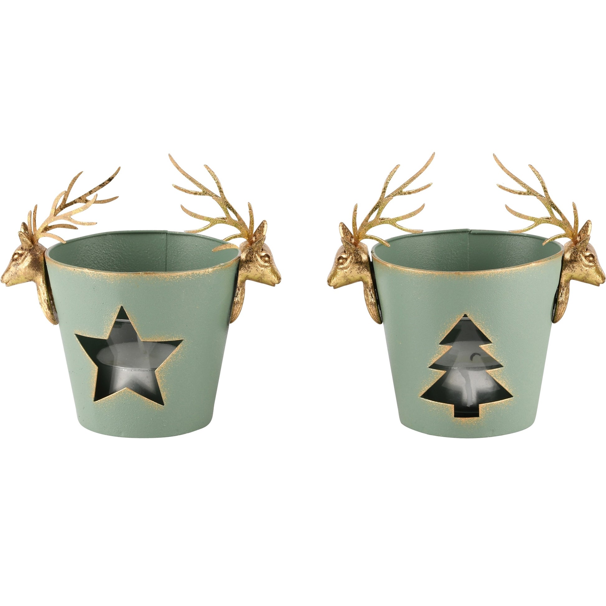 Mit seiner Größe von 12 × 12 × 8 cm ist der grüne Rentier-Teelichthalter ein stilvolles Dekoelement für Tisch, Fensterbank oder Kommode. Das sanfte Kerzenlicht spiegelt sich im Metall und sorgt für eine behagliche Atmosphäre – ideal für winterliche Abende bei Tee, Musik und Kerzenschein.